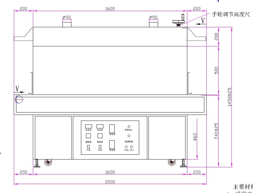 | 4、輸送速度:0~2m/min | 5、 超溫停止加熱並報警 |