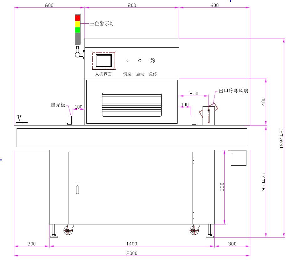 | 7、輸送材料:特氟龍布帶(導條) | 8、輸送寬度:700mm |