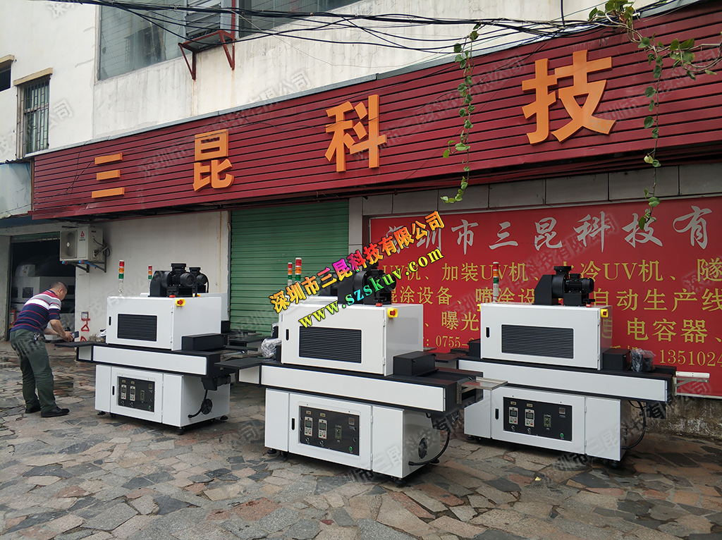 UV油墨UV光固化設備,該膠被特定波長的UV光照射。